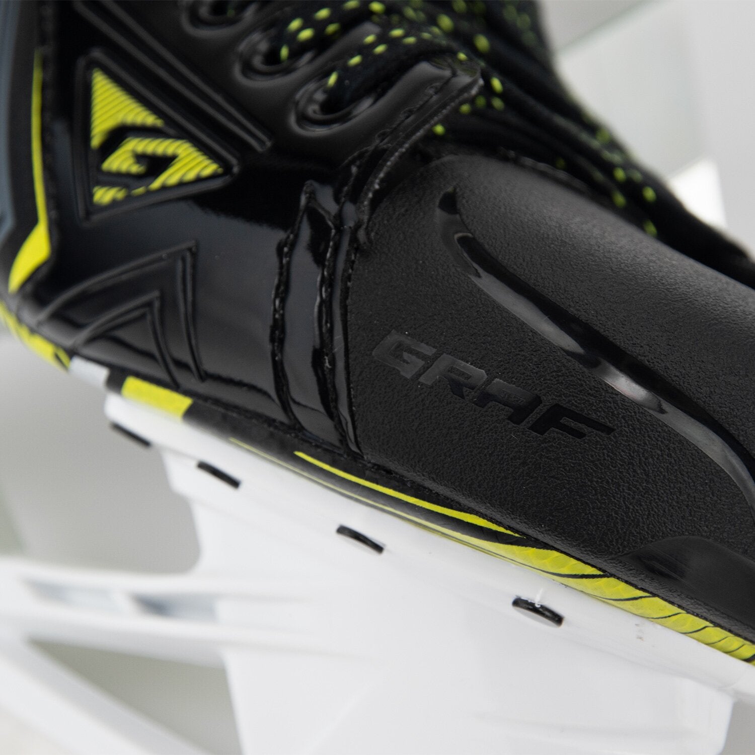 Hvis du leter etter en flott allrounder hockeyskøyte, trenger du ikke lete lenger enn til SUPRA G315X. Denne lette skøyten frigjør sitt fulle potensial når den er varmestøpt. Når de bæres etter oppvarming, tilpasser de forsterkede 3D-formede PP-komposittstruktur-kvartpanelene seg til din individuelle og perfekte passform. G315X har mykt mikrofiberfôr på innsiden og anatomisk polstring, som bidrar til å holde føttene faste i støvelen og reduserer trykkpunkter. På innerfôret brukes et spesielt belegg for å skape ekstra grep, og låser foten i støvelen. G315X overfører kraften fra beinet ditt til isen med de nyutviklede Venom Pro-bladene. Venom Pro har en redesignet angrepsvinkel på støvelen og forbedret form på bladet for å maksimere kontakten med isen under hvert eneste steg.
