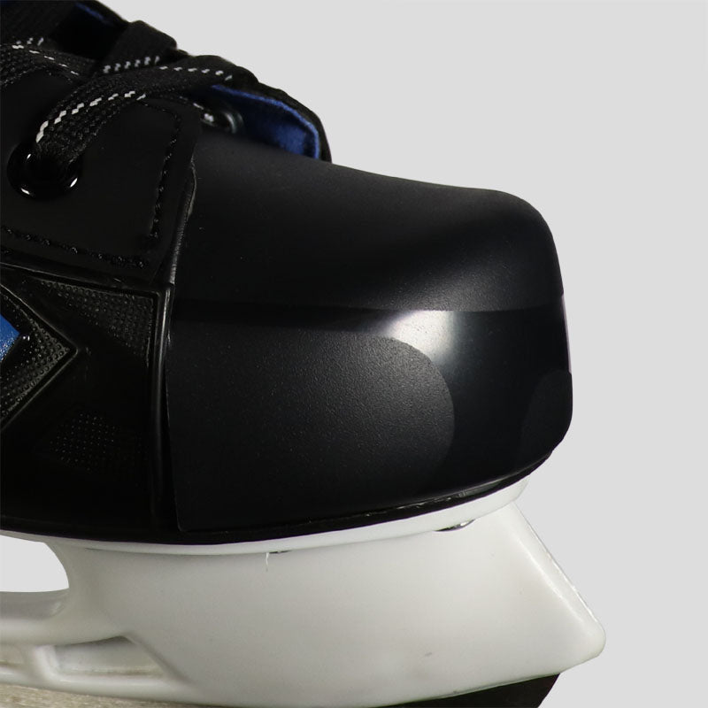 Knall solid hockeyskøyte beregnet for utleiemarkedet. Laget for å tåle røffe påkjenninger. Denne har forsterket tåbeskyttelse og ekstra forsterket stålbeskyttelse. Disse skøytene har størrelsesnummerering og merking av høyre/venstre skøyte bak på helpartiet på skoen - som gjør det enkelt å finne riktig størrelse når skøytene står i hylla.