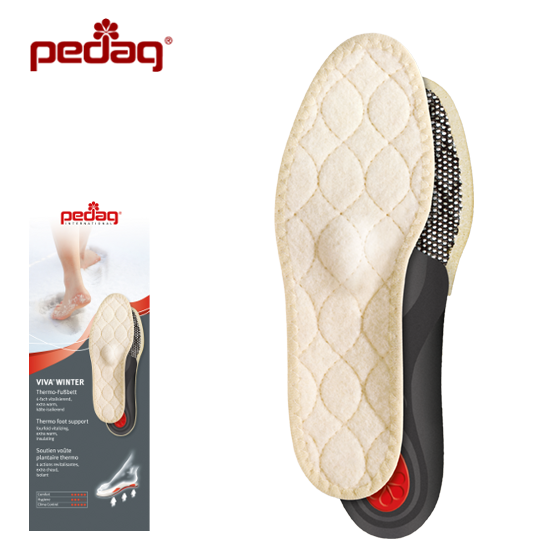 Pedag varm og myk ullsåle som er Anatomisk utformet for støtte og sabilitet med innebygd støtdemping i hælen. Trelags varmebevaring med 100% ull mot foten, skumlag i midten, og nærmest bakken en aluminiumsfolie som reflekterer varmen tilbake til foten. Vintersålen har High Tech Komfortabel kulde beskyttelse og tre lag med isolasjon. Kan brukes i alle skotyper!