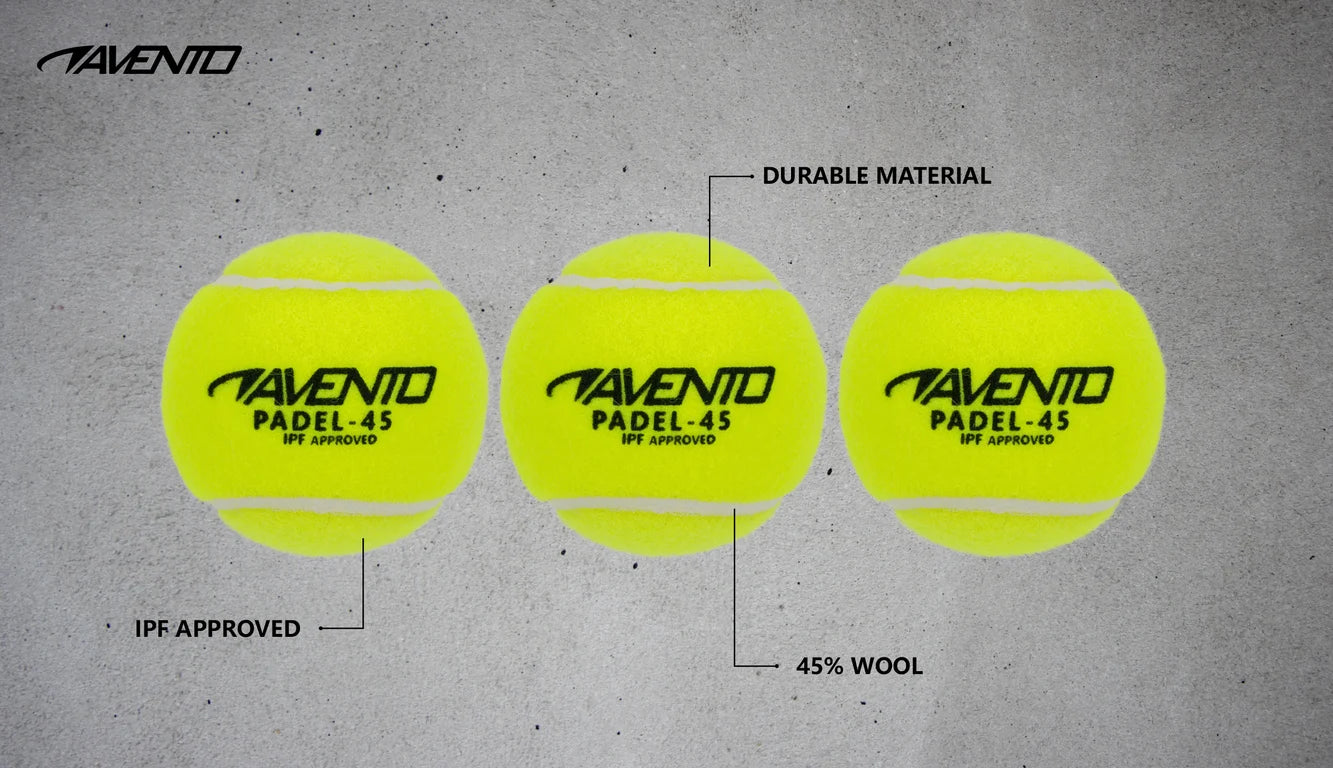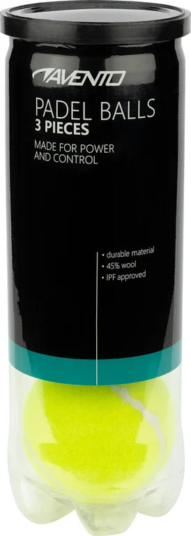 Er du en stor fan av padel? Fullfør ditt eget padelutstyr med et sett med Avento Padel-baller. Padelballer ligner tennisballer, men er litt lettere og mindre. I tillegg er trykket på en padelball generelt lavere; Dette gjør ballen litt tregere og mer egnet for denne høye tempoblandingen av tennis og squash. Disse knallgule Avento-ballene er spesiallaget for padel. Padelballene er laget av 45% ullnålefilt og har en innerkule i naturgummi. De er gasstrykksatt (10-12 psi) og Avento-ballene er godkjent av IPF (International Padel Federation); Så du kan bruke dem til både konkurransedyktig og fritidsbruk. Padelballen har en spretthøyde på ca 135 til 145 cm. Det er 3 baller i et forseglet rør, som du enkelt kan ta med til padelbanen i vesken eller ryggsekken. Match Avento-kulesettet med en koordinerende Avento Padel-racket, og du er uslåelig!