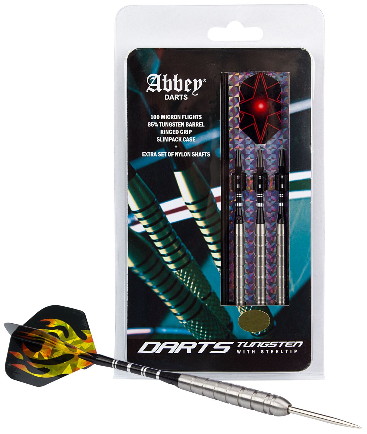 Øver du på å bli en god darter? Du gjør det bra med dette piltsettet av Abbey Darts. 85% tungsten barrel, aluminiumsakselen og stålspissen holder pilen i balanse når den passerer gjennom luften, noe som hjelper den å nå målet sitt med presisjon!