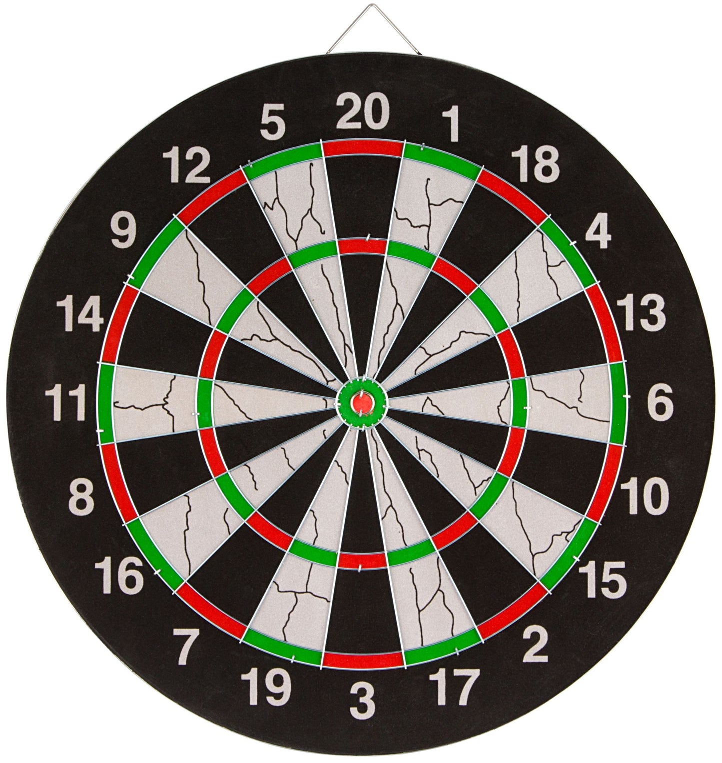 Denne skiven inkluderer alt du trenger for en turnering, en vennlig konkurranse på hytta, i hagen eller andre steder hvor dart nytes. På den ene siden av skiven har man den klassiske dartskiven. På den andre er det en målskive. Dobbelt så mye moro i en pakke.