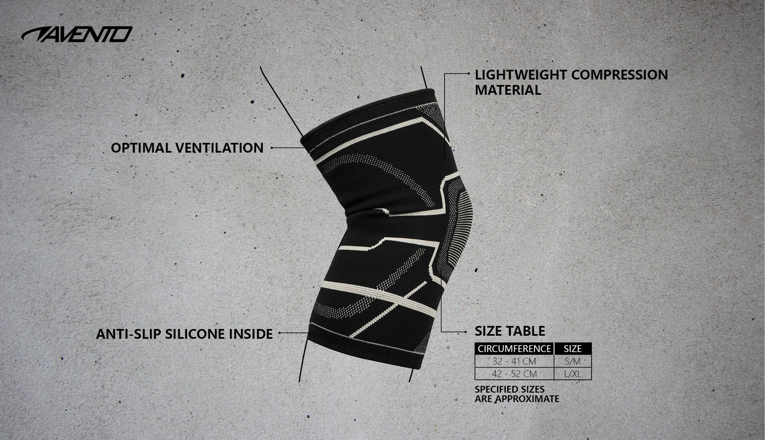 Knekompresjonsstøtte – Avento gir behagelig støtte i hverdagen og på trening.