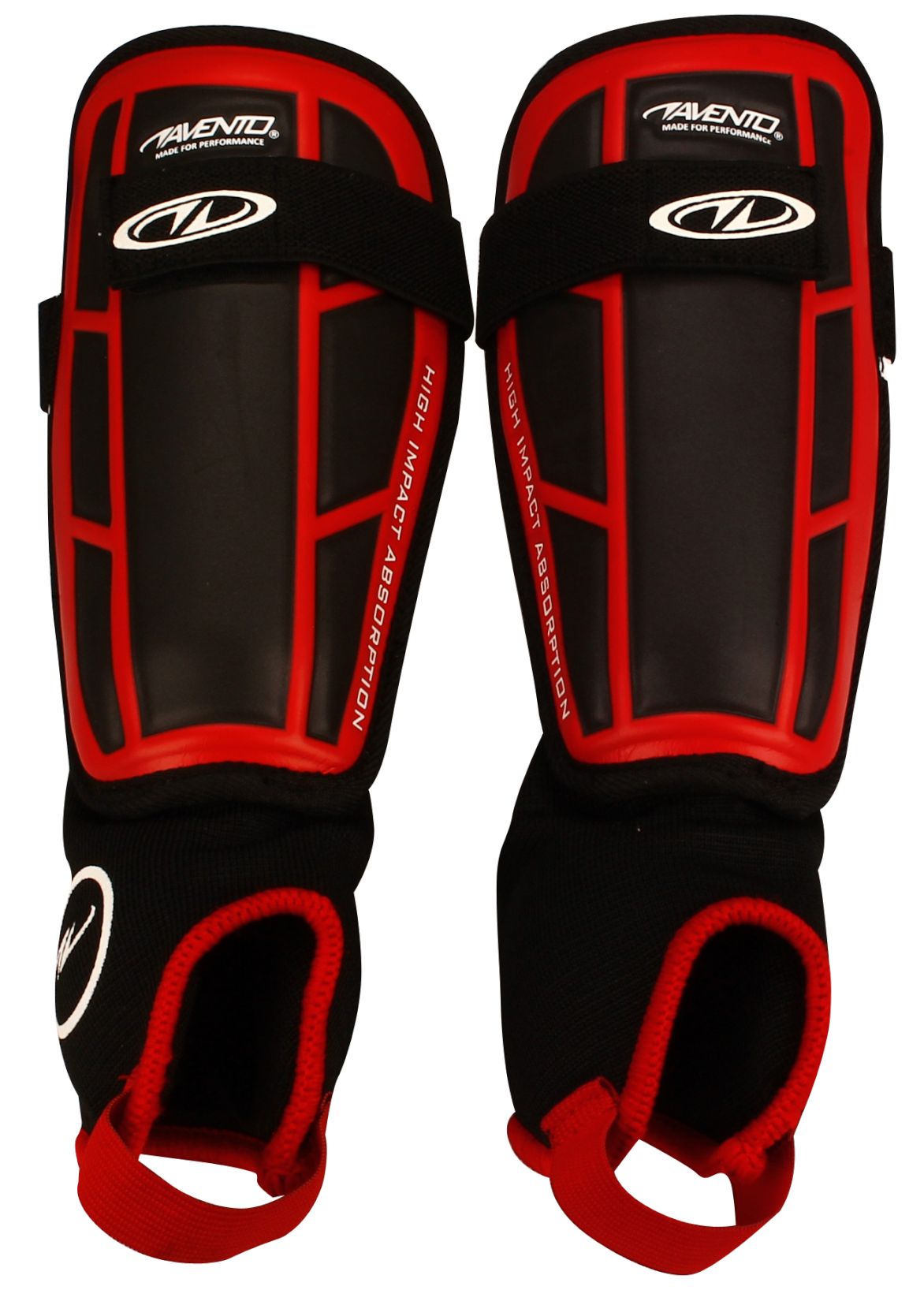 Det er viktig når du spiller fotball å beskytte skinnbeina dine mot å bli skadet. Avento shin beskyttelse beskytter skinnbeinet mot gjentatte støt. Disse skinnbeskyttelsene har en integrert plastkappe slik at de kan fordele støt-styrken. Du har en justerbar brei strikk med borrelåsfeste øverst og en under foten slik at beskyttelsen holder seg på plass. Beskyttelsen sitter også i en ankelsokk i nylon med støtsikring. Finnes i en svart / rød fargekombinasjon.