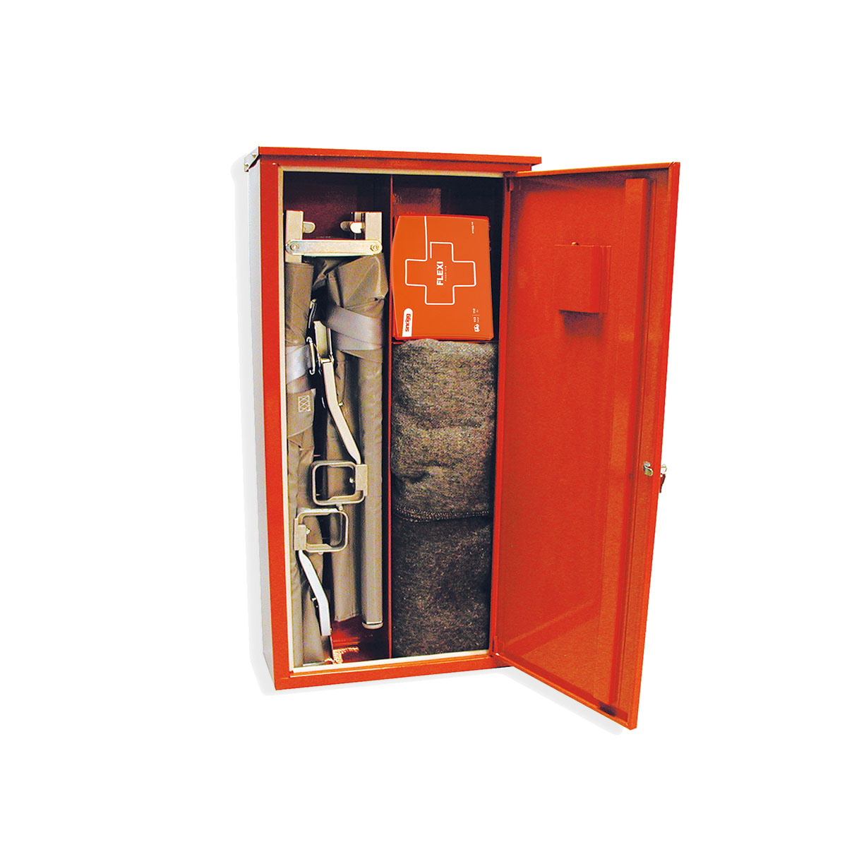 Skapet er forarbeidet i brennlakkert stål og har innlagte pakninger i dør.. Båreskapet samler det mest nødvendige førstehjelpsutstyret på en plass. Båreskapet leveres med 1stk sammenleggbar sykebåre, 2 stk. ulltepper, samt en førstehjelpsenhet med utstyr for små og store skader.