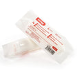 Enkeltannspakker leveres i flere størrelser. Overflaten på kompressen er belagt med en film som forebygger at den fester til såret.