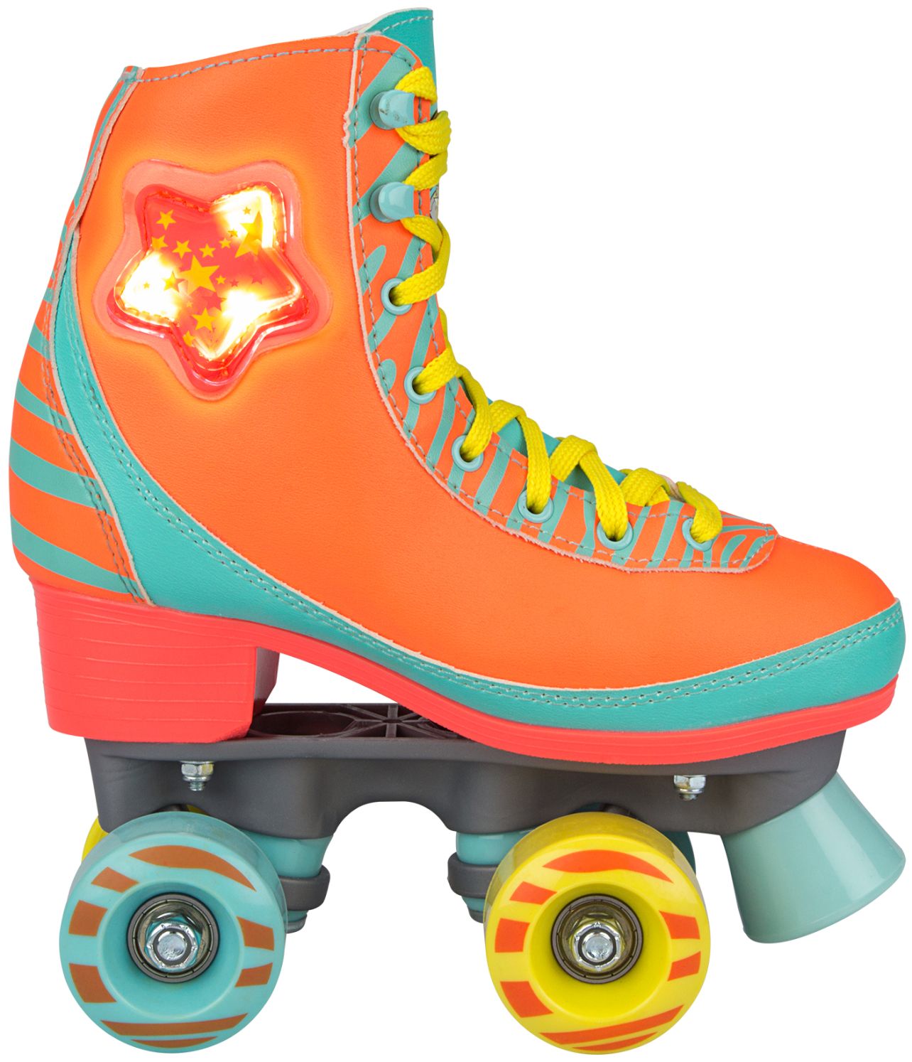 Rulleskøyter og LED lys er alltid en morsom mix. Rulleskøytene passer seg like godt på Disko og dans som de gjør til lek og morro. Stjernen lyser automatisk opp ettersom skøyten brukes.