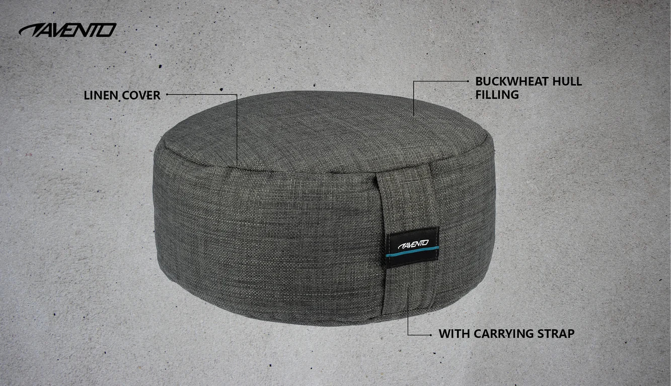 Leter du etter en behagelig og myk overflate mens du mediterer? Denne Avento meditasjonsputen er din ideelle partner under yoga, pilates og meditasjonsøkter. Takket være putens hevede overflate kan du holde deg i riktig posisjon lenger og mer komfortabelt uten å bli stiv. Den faste puten gir støtte til rygg, hofter og ben og danner grunnlaget for økten. Denne modellen har et indre og ytre deksel, noe som gjør puten ekstra fast. Puten er fylt med bokhvete skrog og er også lett å fylle på eller tømme, ved hjelp av den doble glidelåsen. På den måten kan høyden på puten justeres riktig til kroppen. Denne yogaputen er laget av lin, noe som gir den en avkjølende effekt. Det naturlige materialet er miljøvennlig og veldig slitesterkt.