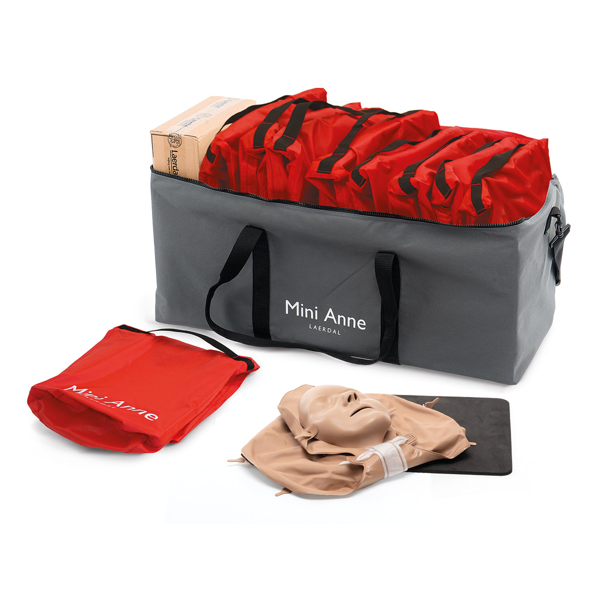 Klasseromsløsning for hjerte-lunge-redning. En stor-forpakning med treningsdukker til hjerte-lunge-redning. Denne praktiske forpakkningen inkluderer: