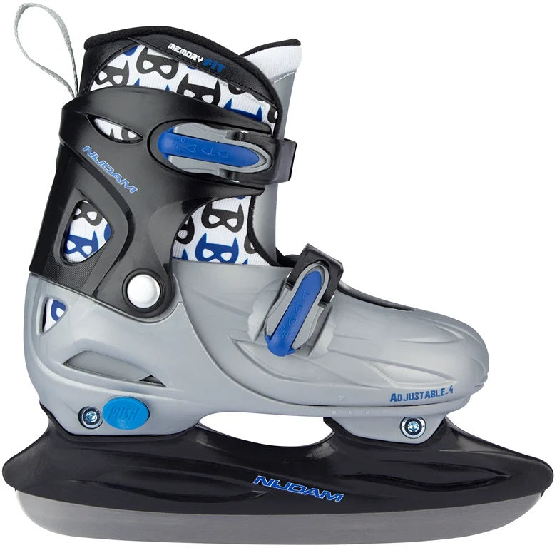 Disse superkule Nijdam Masked Rider Justerbare ishockeyskøytene gjør deg supersmidig og rask som enhver ishockeyspiller ønsker å være. Den harde TPE-skoen er laget for å absorbere de mange støtene en ishockeyspiller kan få og beskytter dermed foten din godt. Det er enkelt å justere størrelsen med knappen nederst på skøyten slik at de kan brukes i årevis. En enkel lukking og komfortabel innersko i polyester. En flott skøyte for de aller fleste.