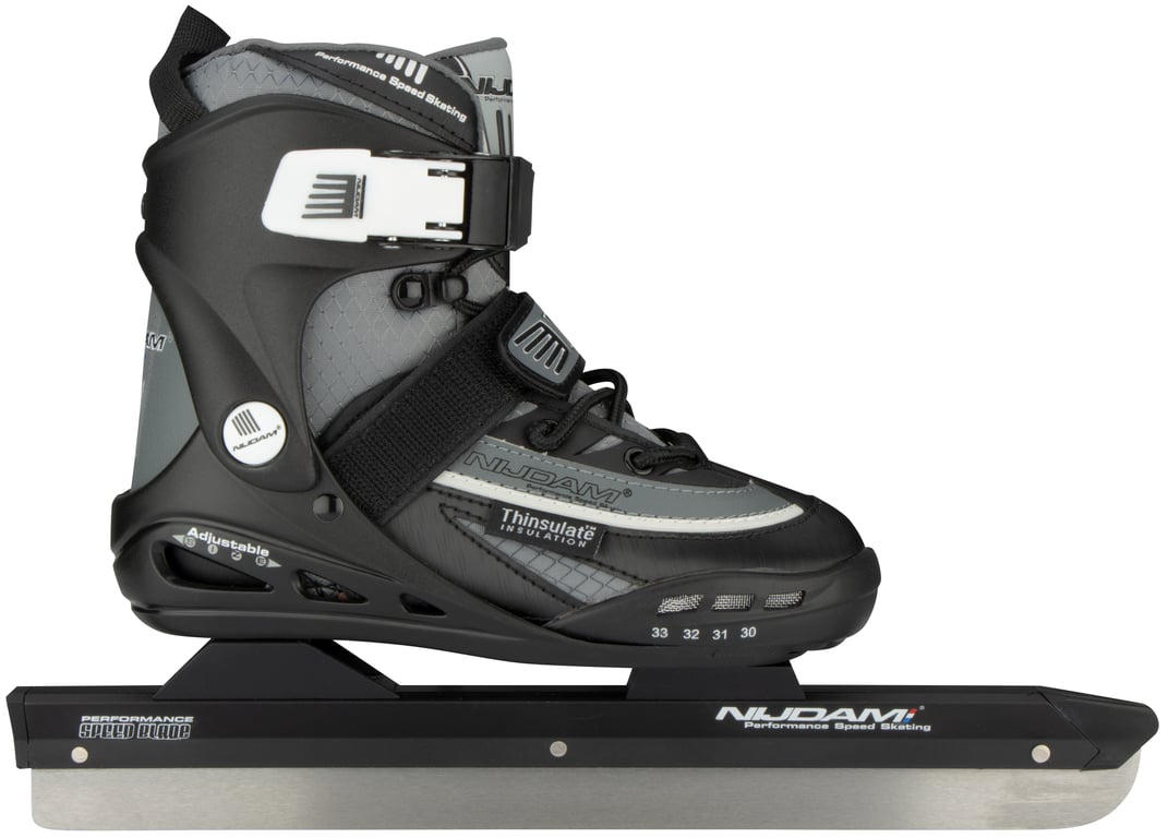 Du kommer så fort med disse lette Nijdam Speed Space semi-myke skøytene. Og takket være deres justerbarhet, vil de vare i mange år framover. De harde PE-hettene rundt denne skøyten gir forsterkning/beskyttelse av ankler og tær mens du går på skøyter. Selve støvelen, innerskoen i polyesterskum og Thinsulate-fôr gir optimal komfort. De robuste lukkingene og bladene i rustfritt stål fullfører disse "noren". Gå for det!