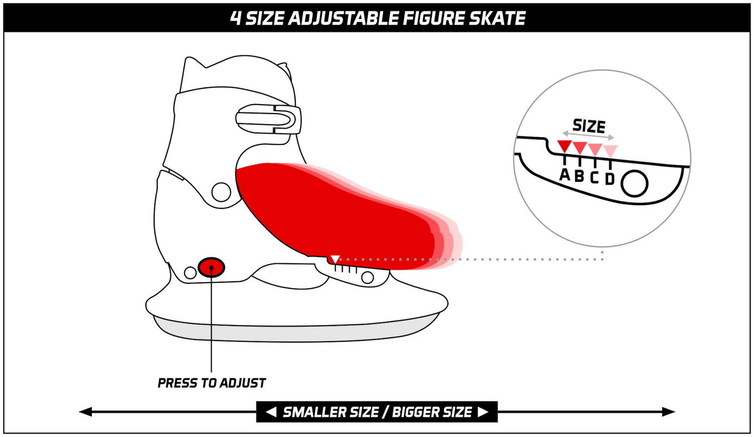 Justerbar i 4 størrelser ved å trykke på knappen i hælen