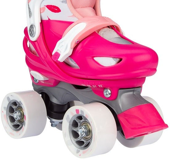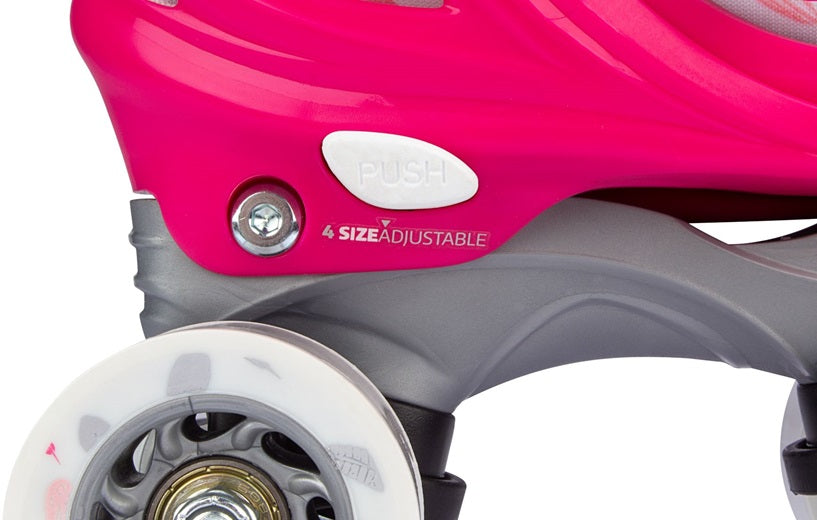 Flotte rulleskøyter som man kan justere størrelsen på ved å trykke inn en liten knapp ved helen. Justeres da over 3 størrelser. Disse rulleskøytene er laget i robust design som gir deg god ankelstøtte og støtte generelt til hele foten, samtidig som du har en god komfort.
