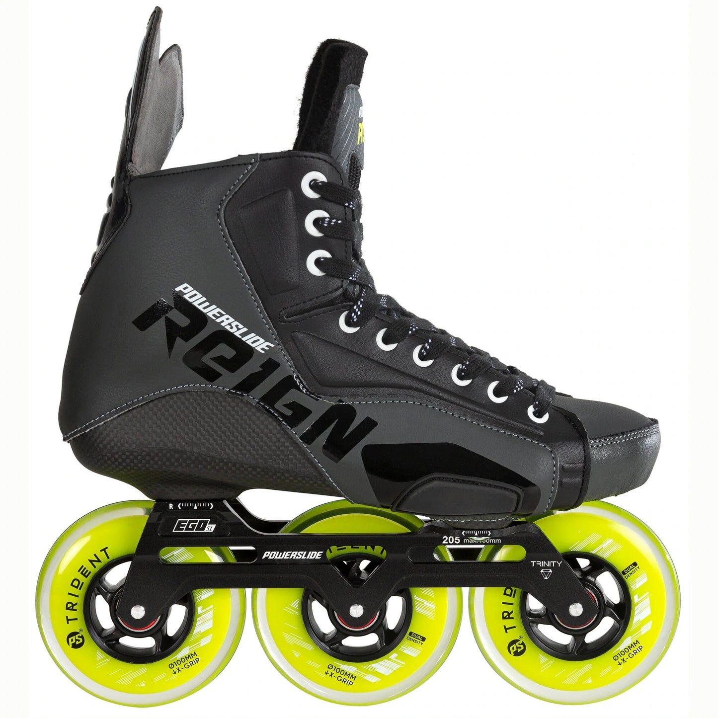 Rammen er den banebrytende Powerslide Ego. Denne er produsert i 6061 aluminium. Det finnes ikke et større kvalitetsstempel enn dette. Dette gir en svært lav vekt og en holdbarhet som gjør at denne skøyta varer. Ramma har TRINITY 3-punksmontasjesystem. Kulelager er de fantastiske ABEC-9 Chrome Steel. Hjula er de raske Powerslide Trident DD (Dual Density) X-grip SHR (Super High Rebound)