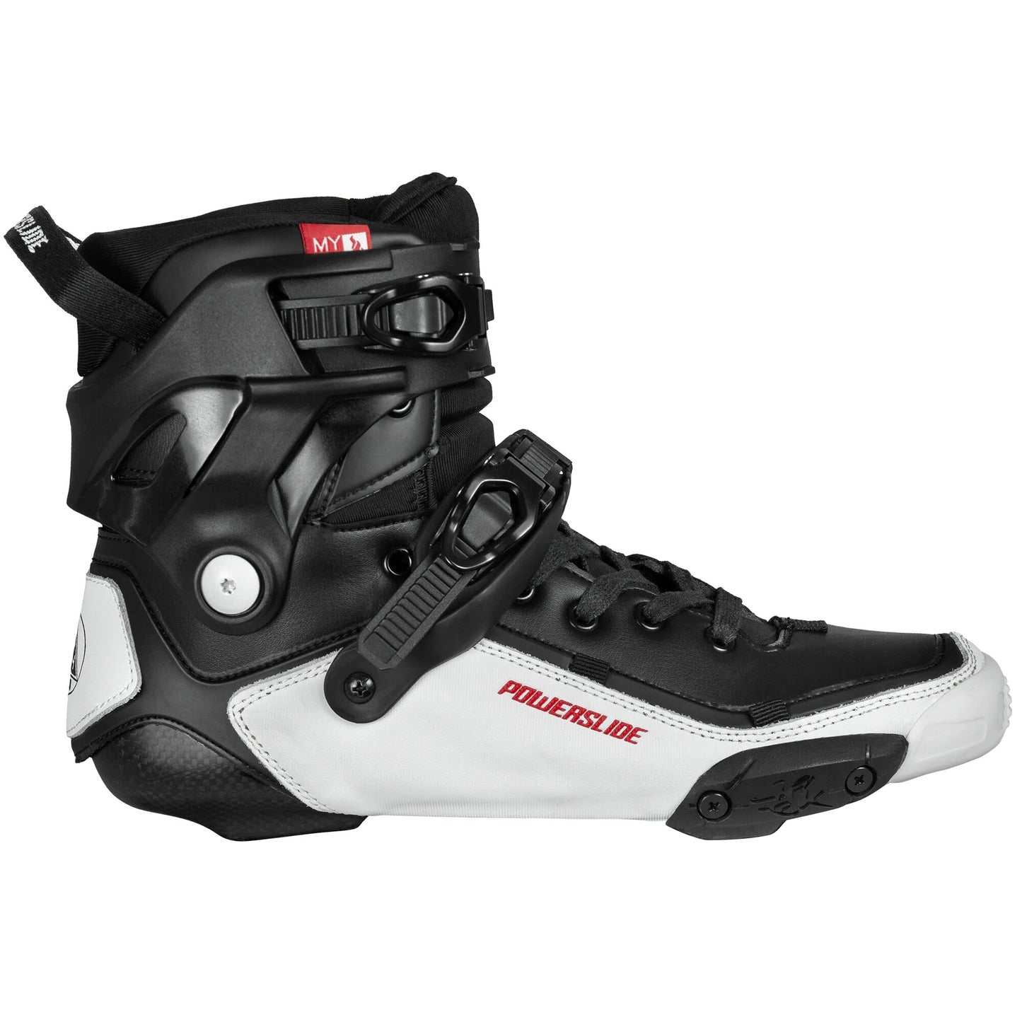 Dette er en håndlaget Hybrid Carbon sko laget for TRINITY rammer. Et Myfit skall som tåler opp mot 90 grader celsius. Skoen er forsterket i fiberglass forsterket plastikk (GFK). Du får med en Myfit såle som er spesial designet for rulleskøytere. Skoen er polstret med microfiber, MESH og syntetisk lær. Skoen er pustende. Skoen er svært lett og veier (ved størelse 41) 720g.