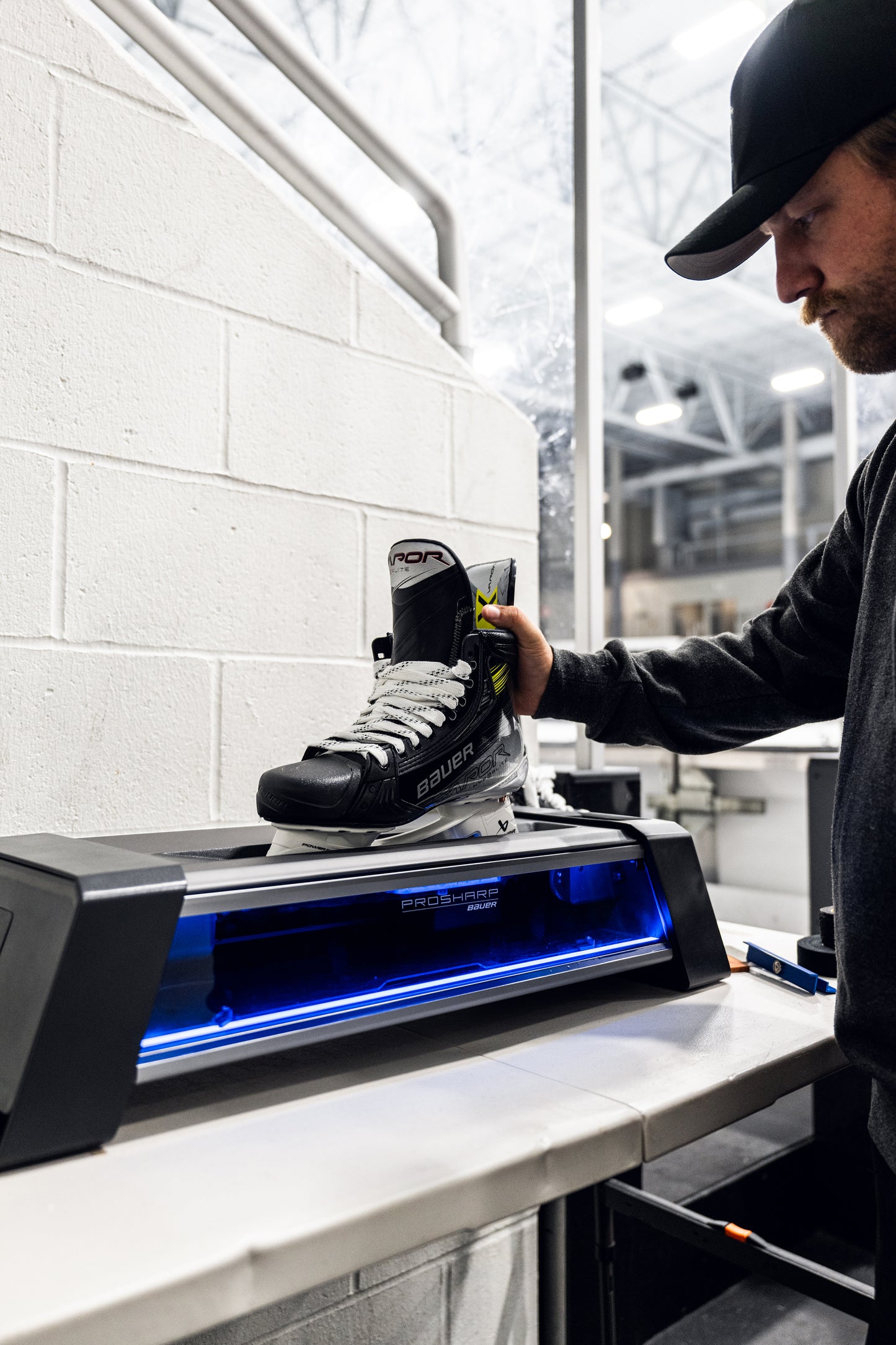 PROSHARP BAUER ADVANTEDGE skøytesliper gir alle muligheten til å slipe skøytene sine med profesjonell presisjon ved å trykke på en knapp. Med automatisert fastspenning, inn- og utgangspunkter og sliping kan du eliminere risikoen for manuelle feil og i stedet få konsistente, nøyaktige resultater hver gang stålene dine må slipes.