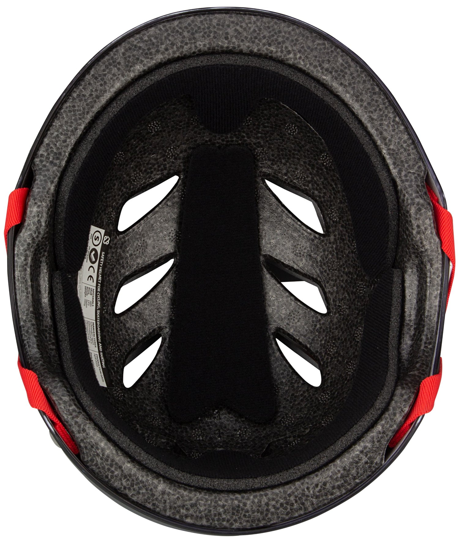 | Egenskaper | • Hjelmen tilfredsstiller gjeldende sikkerhetsstandarder • Multi-hjelm - kan brukes til diverse sporter som skating, skateboarding eller sykling • Tilgjengelige størrelser (hodeomkrets): S - ca. 50 - 54 cm, M - ca. 54 - 58 cm, L - ca. 58 - 62 cm • Justerbar med borrelås • Ytre skall: kraftig ABS, matt finish • På innsiden: lett støtdempende EPS • Fôr: pustende polyester • Hakestropp: nylon med hurtiglås spenne |