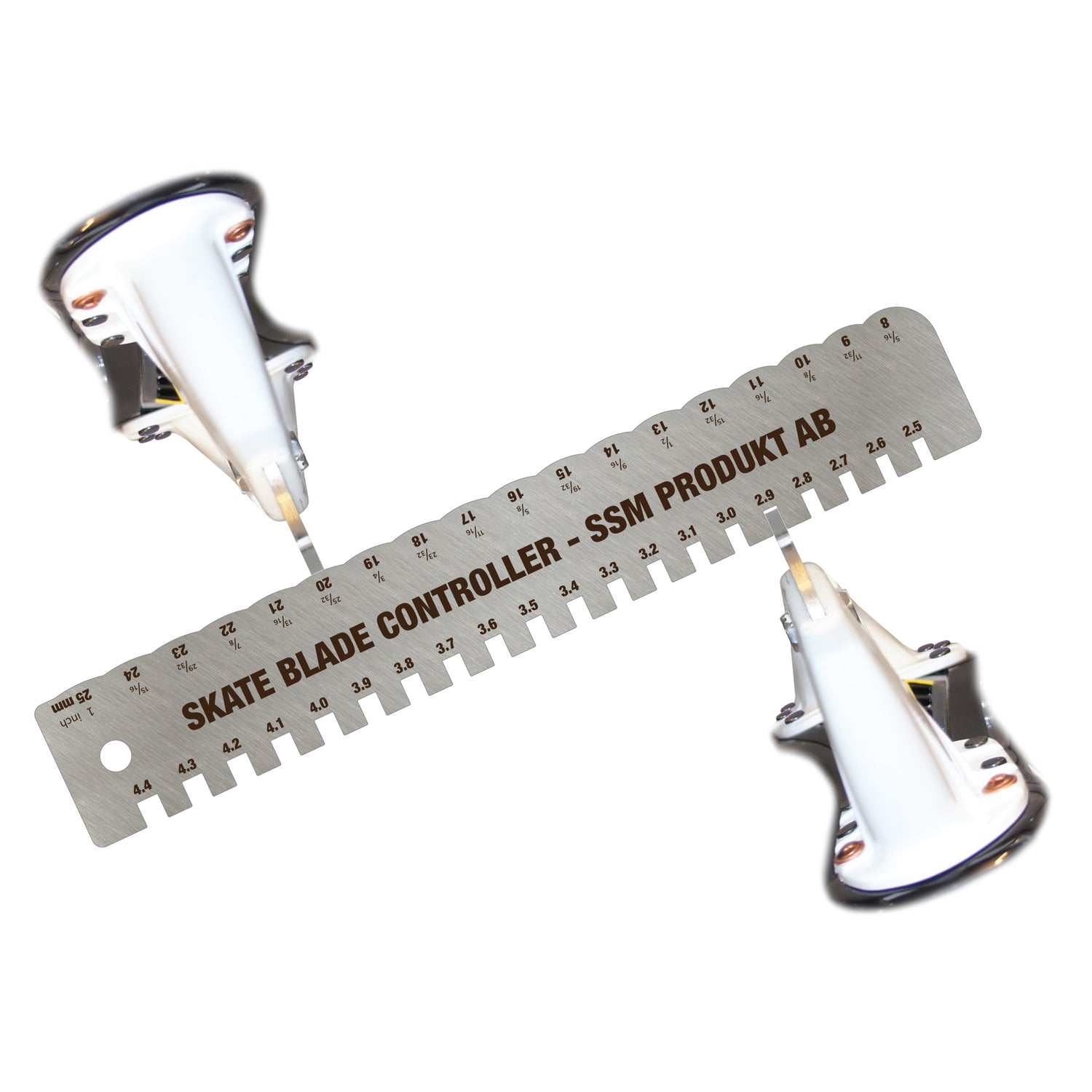 With our measuring stick SBC (Skate Blade Controller) you can easily see the width of the skate blade. This is very practical when setting up the skate sharpening machine. You can also see which radius of hollow that has been sharpened on the skate blade. We have the full range from 8 mm up to 25 mm.