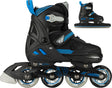 Denne pakken gir deg det beste fra to verdener. Skøyter på vinteren og rulleskøyter på sommeren. Dette er en perfekt kombinasjon for de som ønsker både et par skøyter og rulleskøyter til prisen av en. Skoen er av "Semi-Soft Designet". Polstret med syntetisk lær. Dette gir økt følelse av kontroll og stabilitet, samt en svært god fit og komfort. Rammen er produsert i aluminium. Hjulene er i støpt i 82A og skøytestålet er i carbonisert stål og kommer allerede slipt.