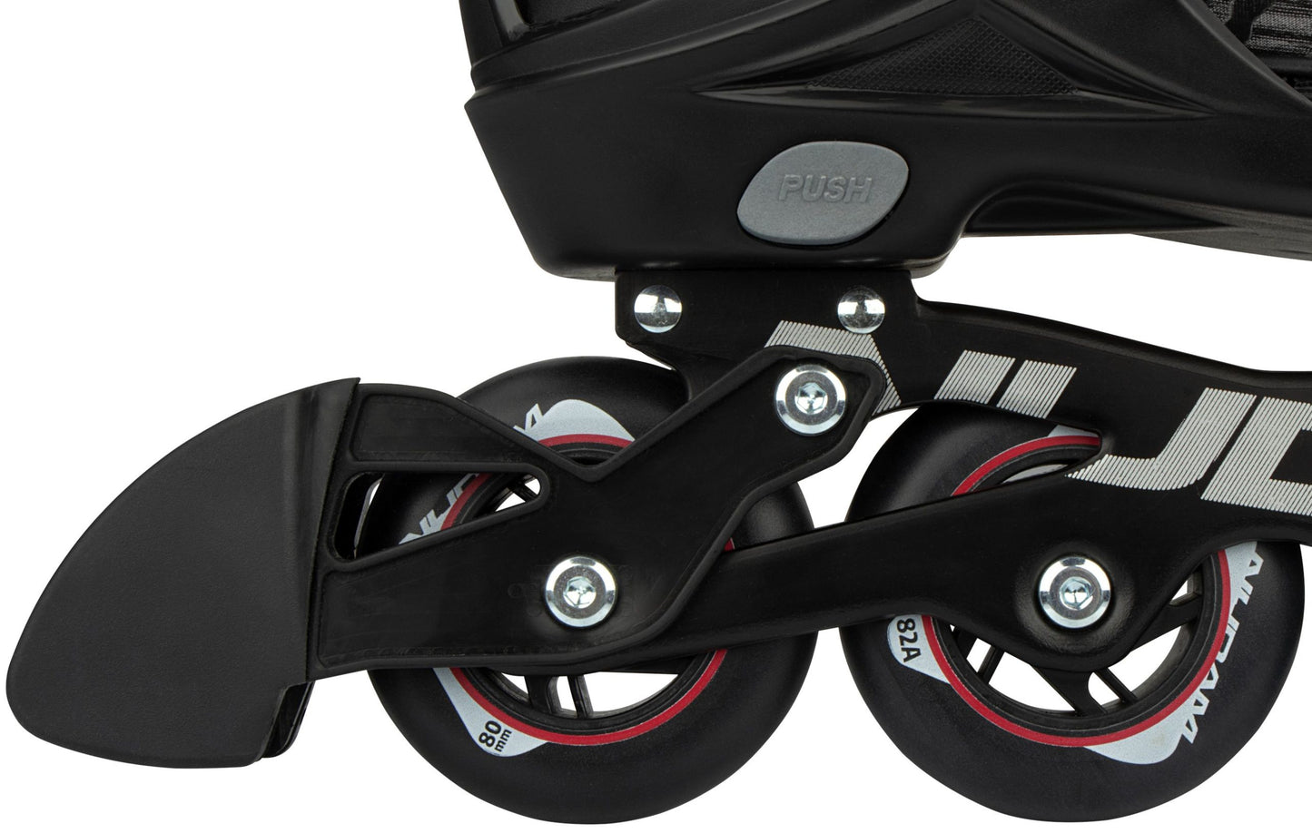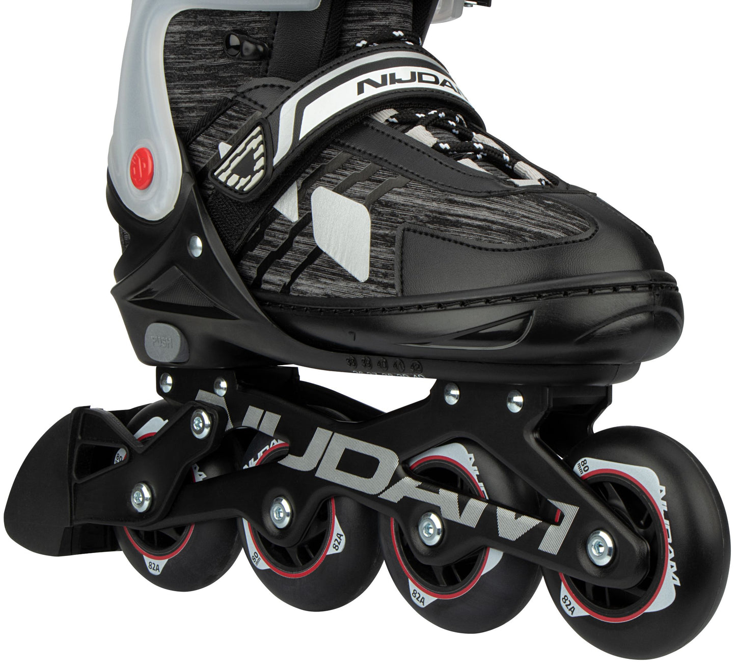 Skoen er polstret med polyester lycra og EVA-materiell noe som gir en svært komfortabel fit. Skoen er produsert i Sjokk-resistent PE. Rammen er i aluminium. Hjulene er støpt i 85A. Kommer med de fantastiske ABEC-7 Half-chrome kulelager.