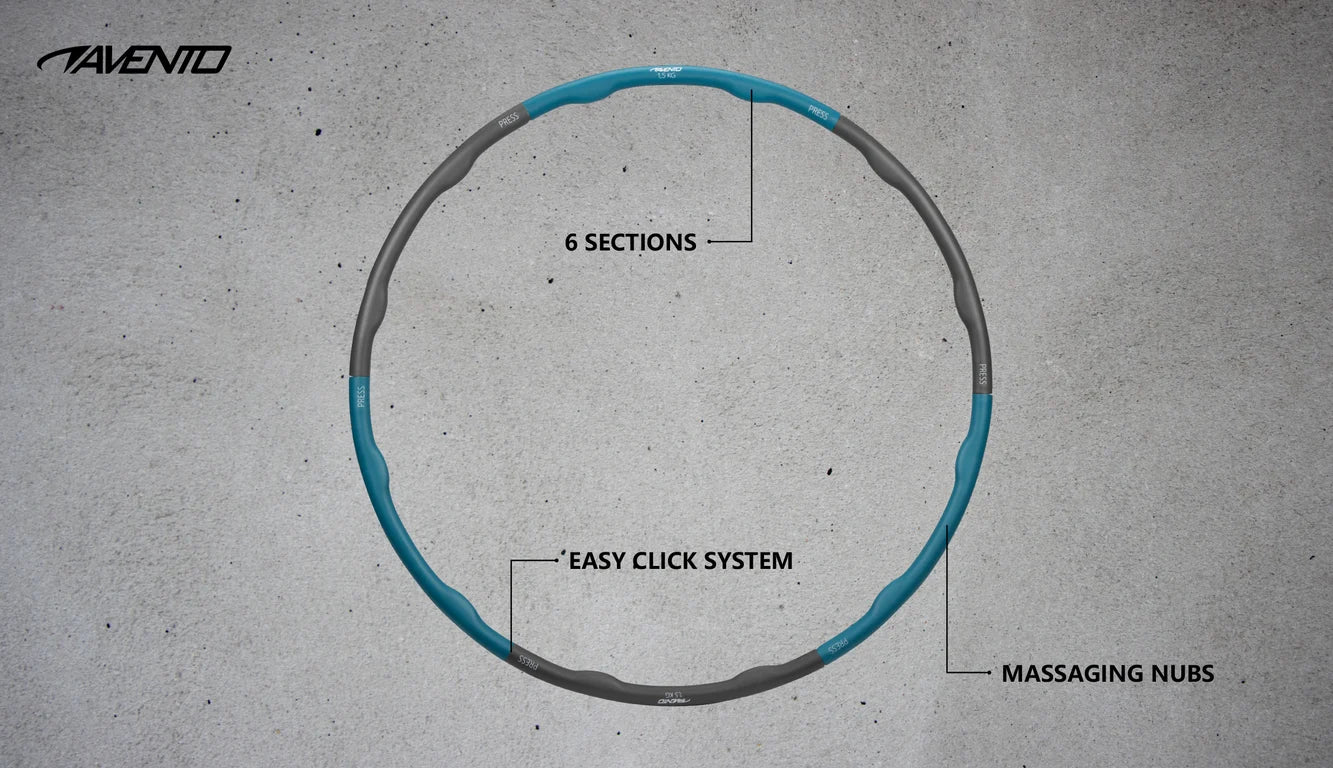 Hvis du er ute etter en bøyle spesielt for fitness, er Avento det rette merket for deg! Denne vektede fitness hula hoop har myk polstring og masserer pigger på innerkanten. Avento Hula Hoop gir brukeren en mild massasje som bidrar til å forme målrettede områder på kroppen. Jobb med koordinasjonen, balanse og styrk ryggen, rumpa, beinet og spesielt magemusklene med denne fitnesshula-bøylen. Avento Hula Hoop består av seks deler, noe som betyr at den er kompakt for enkel lagring og bærbarhet.