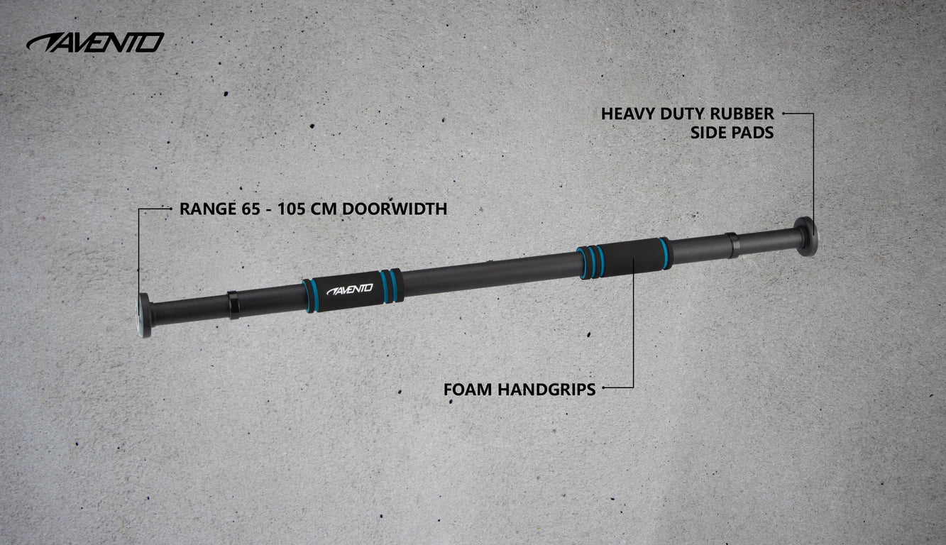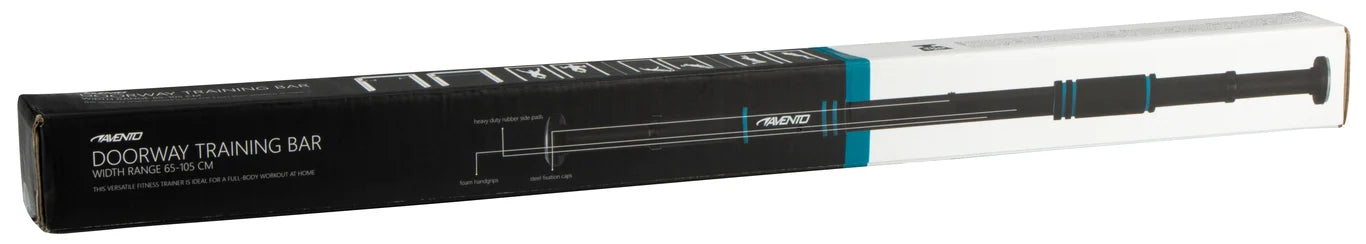 Du kan utføre et bredt utvalg av øvelser hjemme med denne Avento Doorway Training Bar. Plasser den lengdejusterbare haken opp på toppen av dørkarmen og tren overkroppen med pull-ups. Varier grepsposisjonene dine for å trene forskjellige muskelgrupper og gjøre treningen så tøff du vil. Du kan også feste dørstolpestangen til bunnen av dørkarmen for å hekte føttene under for sit-ups. Den robuste, forsterkede designen gjør den til det ideelle verktøyet for å trene et bredt utvalg av muskler. Pull up-stangen er laget av slitesterkt stål med en luksuriøs finish og har myke skumhåndtak for et riktig og komfortabelt grep.