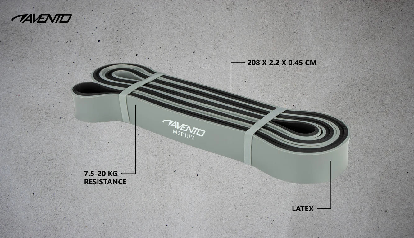 Har du følelsen av at øvelsene dine er for lette? Bruk deretter et Avento-kraftbånd for å legge vekt på forskjellige øvelser. Kraftbåndet bidrar til å forbedre styrke, balanse, fleksibilitet og utholdenhet. Du kan for eksempel bruke motstandsbåndet til: styrke- og eksplosivitetstrening, hurtighets- og smidighetstrening og fleksibilitets- og tøyningsøvelser. Avento-motstandselastikken kan til og med brukes til skadeforebygging og rehabilitering. Dessuten, med motstandsbåndet kan du enkelt utføre en treningsøkt hjemme, på treningsstudioet eller ute! Dimensjoner: 208 (omkrets) x 2,2 x 0,45 cm.