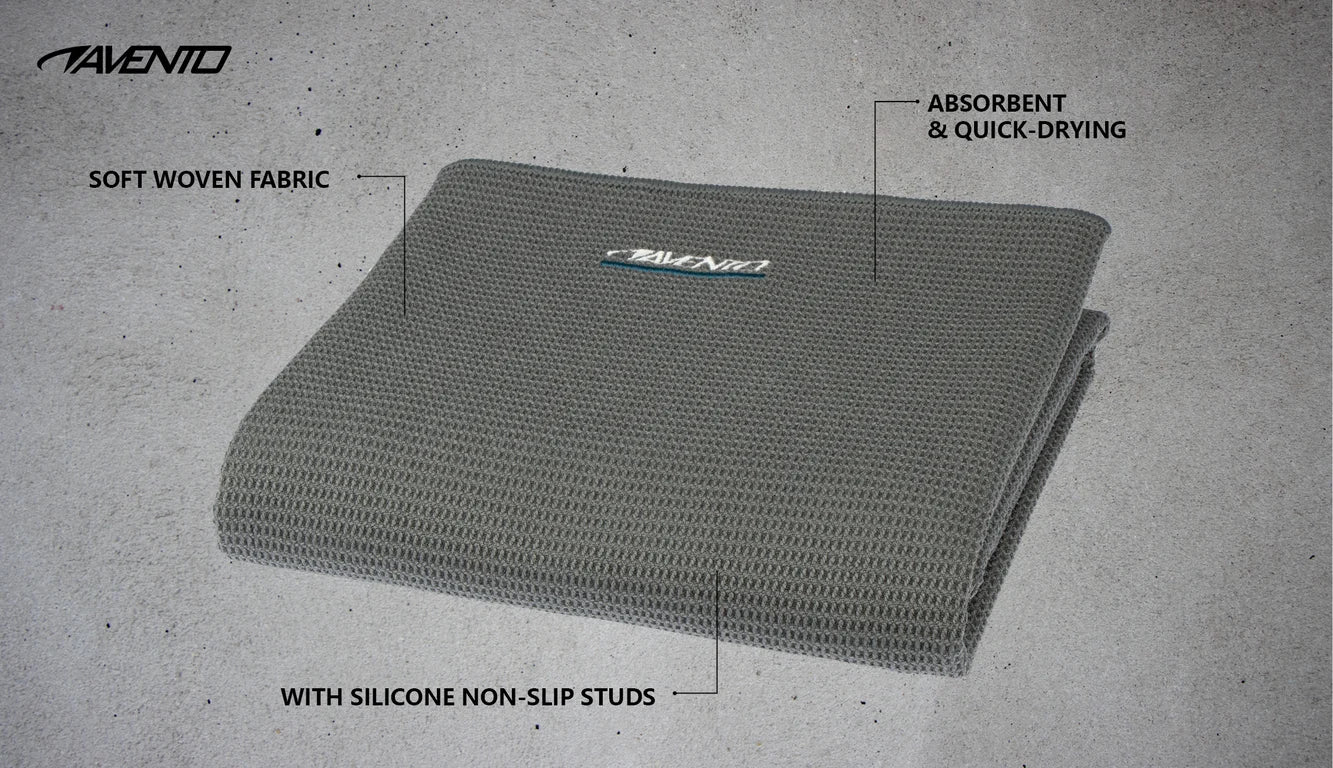 Dette Avento Yoga-håndkleet er det ideelle håndkleet å bruke under yoga, pilates eller meditasjon. Håndkleet er laget av myk vevd polyester og polyamid, har avrundede hjørner og et bikakemønster. Silikonpiggene på bunnen gir et perfekt grep, håndkleet glir ikke eller beveger seg under treningen. Legg håndkleet på en yogamatte eller bare på gulvet. Det hurtigtørkende håndkleet absorberer svette og fuktighet og gir deg en myk overflate mens du beveger deg. Også egnet for fitness og andre idretter. Triksene tar plass når du tar den lette vekten, du kan enkelt ta den hvor som helst. Sportshåndkleet er også egnet for bruk i treningsstudioet, for ekstra hygiene og komfort på for eksempel gulvet eller diverse treningsutstyr.